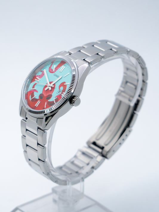 The design and the colours are spectacular and the red of the dial makes it stand out a lot